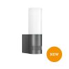 Steinel (Vācija) XLED CAM2 SC Anthracite ar Mākslīgā Intelekta funkciju, ir ar sensoru vadāms āra prožektors (3000 K, 2200 lm, 21 W) ar 180° infrasarkano staru sensoru un 10 m attālumā pagriežamu Full HD platleņķa krāsu videokameru, skaļruni un mikrofonu, viss vienā.